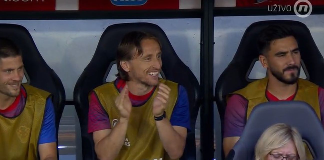 Televizijske kamere su nakon pogotka snimile i Modrićevu reakciju s klupe, zapljeskao je i nasmijao se načinu kako je lopta završila u mreži.