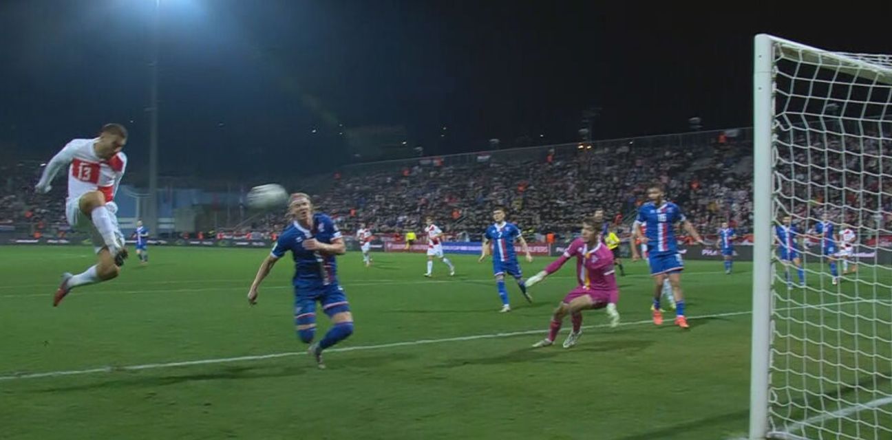Hrvatska je pokrenula akcija s lijeve strane, gdje je prošao i ubacio Ivan Perišić. Obrana gostiju je loptu počistila do ruba kaznenog prostora, gdje je u skoku bio Joško Gvardiol.
