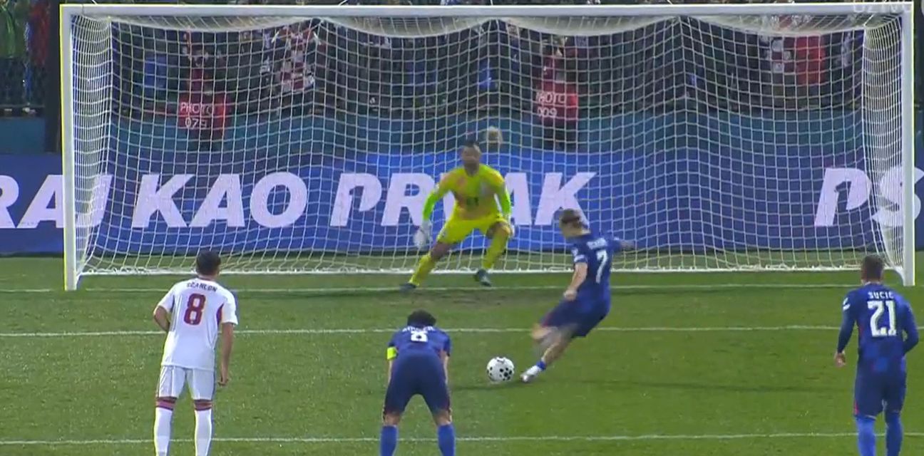 Savršenu priliku za drugi pogodak, zapravo nemoguće bolju imali su Vatreni u 56. minuti, kad je skrivljen kazneni udarac nad Tonijem Frukom, a loptu je odmah u ruke uzeo Lovro Majer.