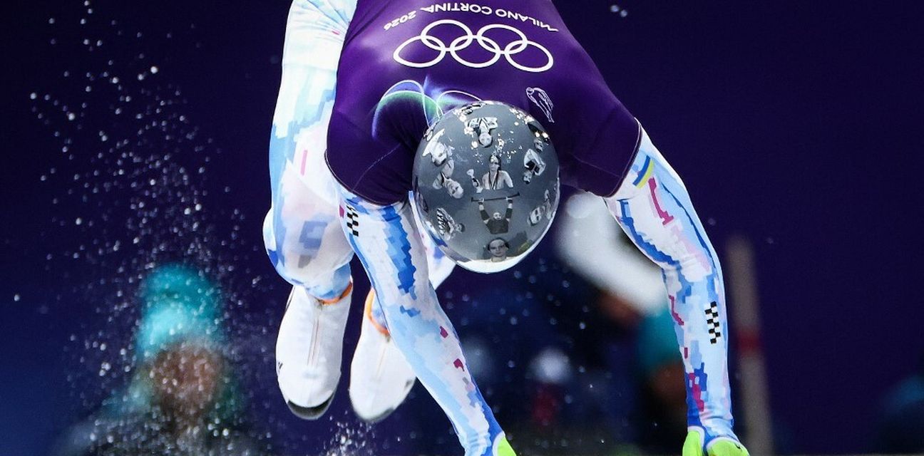 Nositelj ukrajinske zastave na svečanosti otvaranja XXV. Zimskih olimpijskih igara Vladislav Heraskevič tijekom treninga skeletonaša u ponedjeljak u Cortini d'Ampezzo nosio je kacigu s fotografijama svojih sunarodnjaka ubijenih u ruskoj invaziji na svoju zemlju.