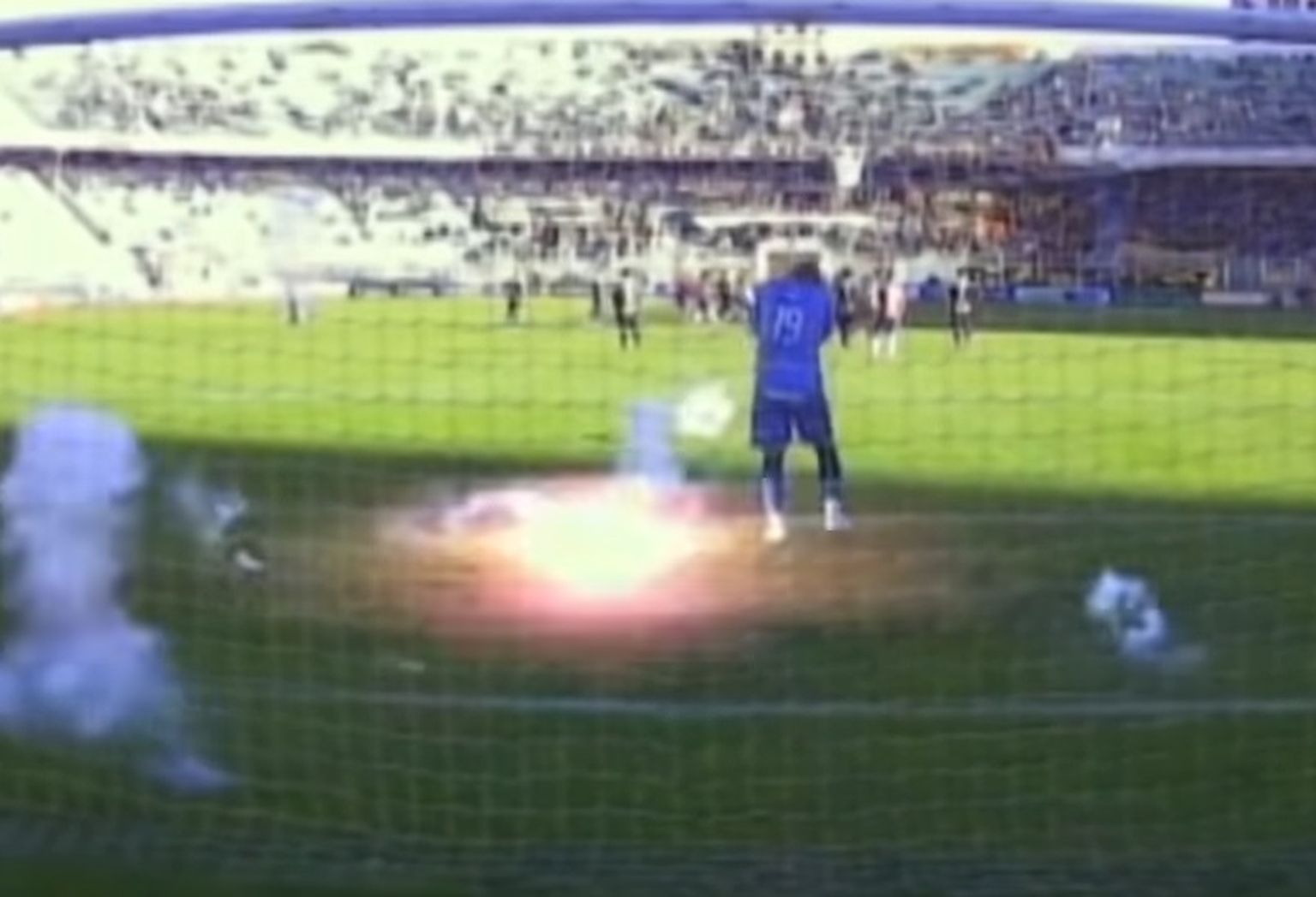 Huligani gađali vratara topovskim udarima i petardama (Screenshot: YouTube)