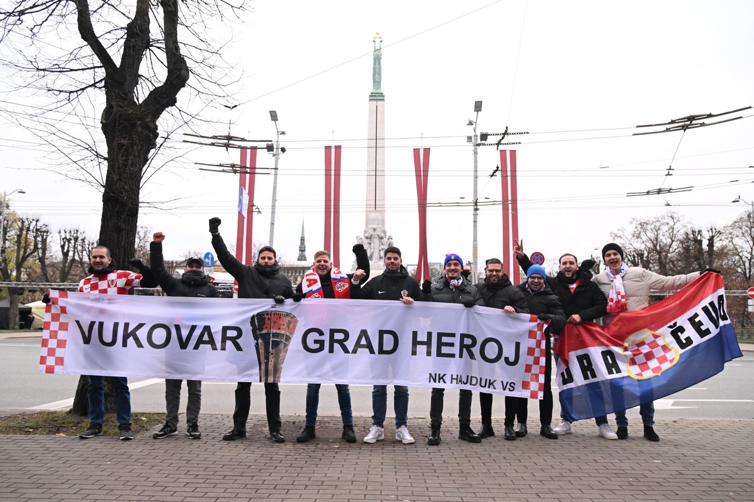 Transparent hrvatskih navijača u Rigi za Vukovar Foto: Ante Čizmić/Cropix -