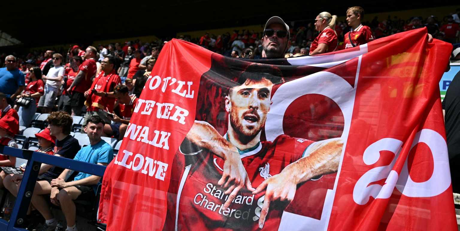 Navijači Liverpoola sa Jotinom slikom Foto: Afp -