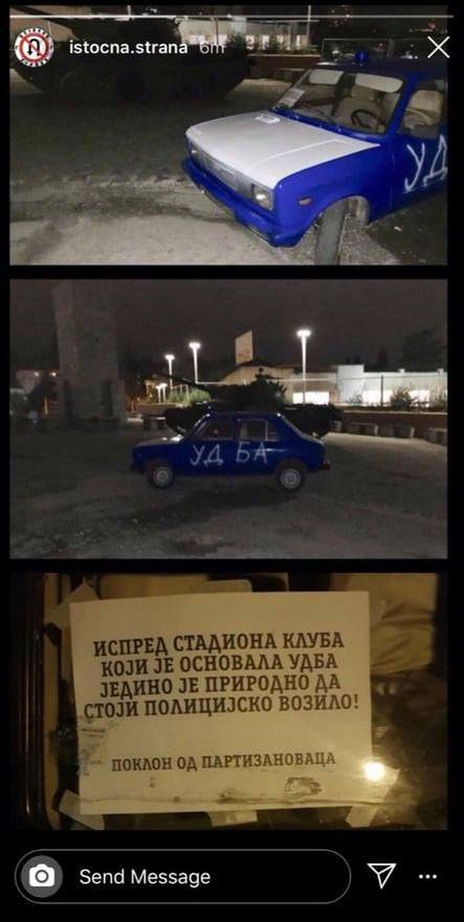 Grobari parkirali policijsko vozilo pored tenka -