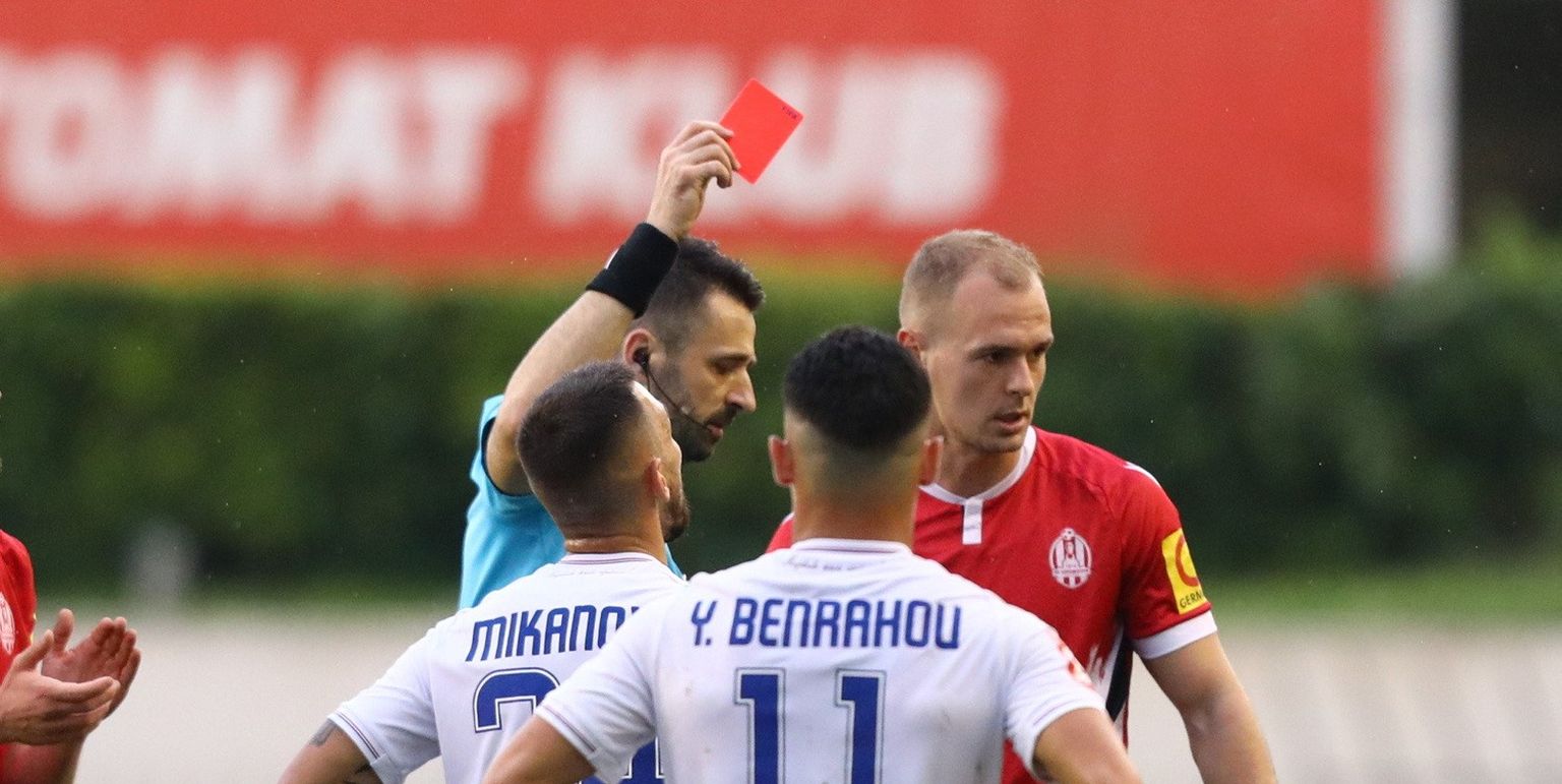 Igor Pajač pokazuje crveni Mikanoviću Foto: Vojko Basic/Cropix -