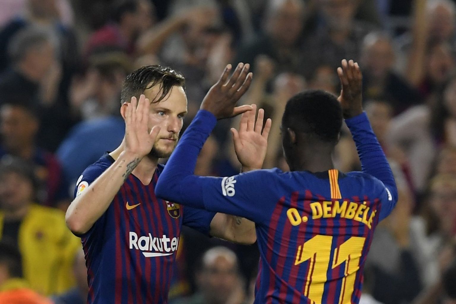 Ivan Rakitić i Ousmane Dembele Foto: Afp -