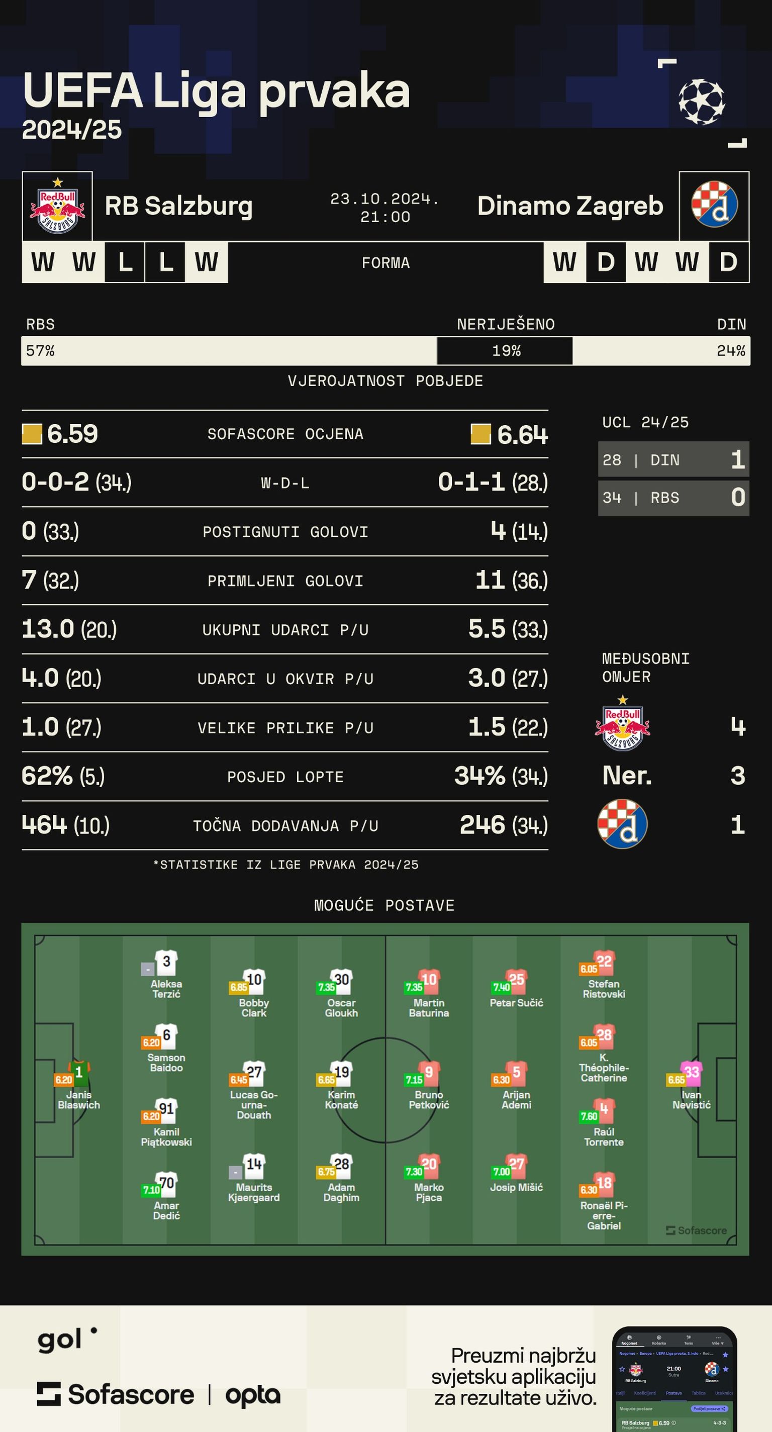 SALZBURG - DINAMO, usporedba