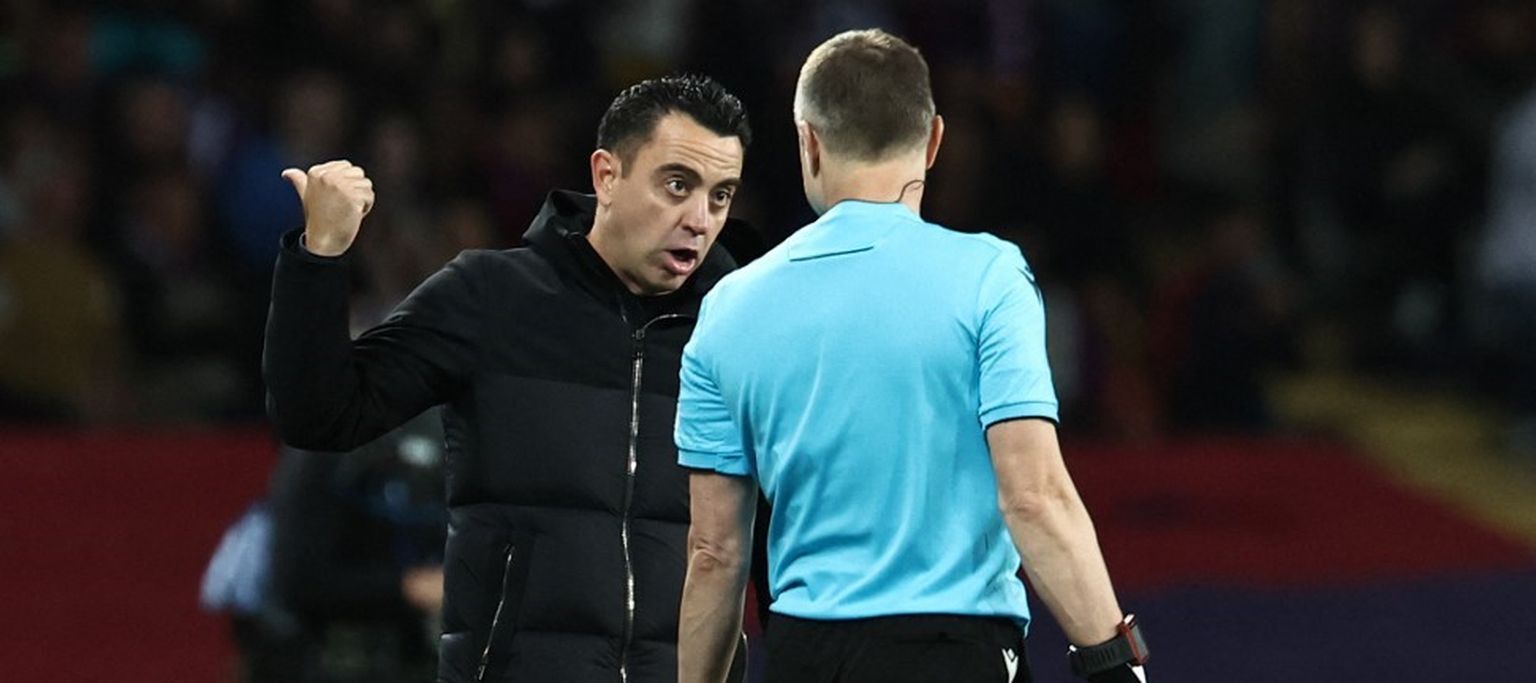 Xavi u razgovoru sa sucem Foto: Afp -