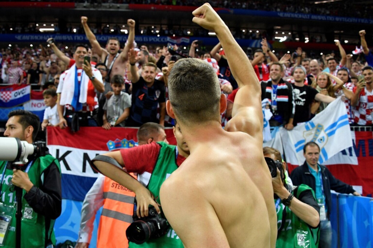 Hrvatski navijači na utakmici Hrvatske i Engleske u Rusiji Foto: Afp -