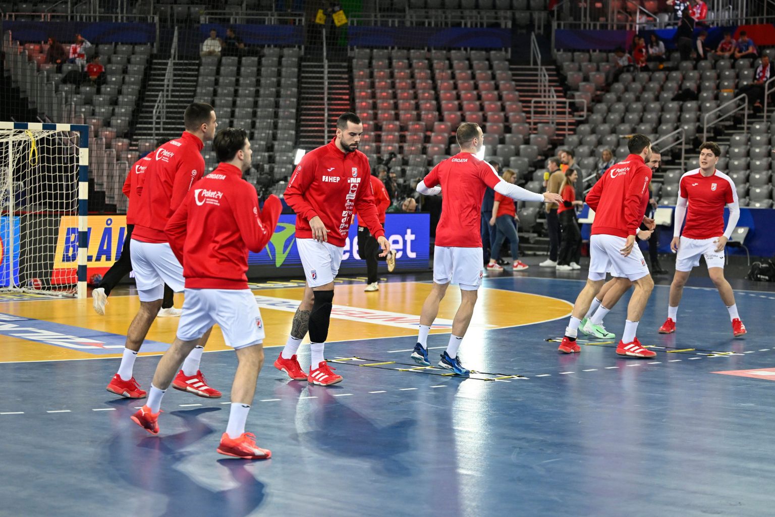 Zagrijavanje naših rukometaša u Areni Foto: Damir Krajač/Cropix -