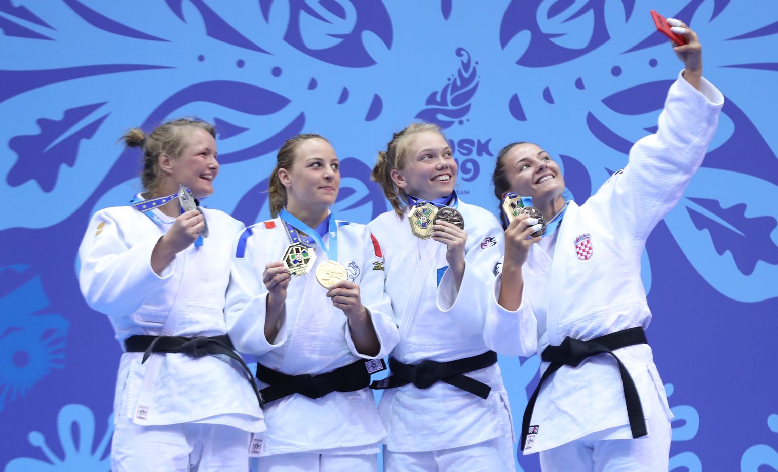 Barbara Matić na postolju s medaljom radi selfie (Foto: judo savez) Foto: judo savez -