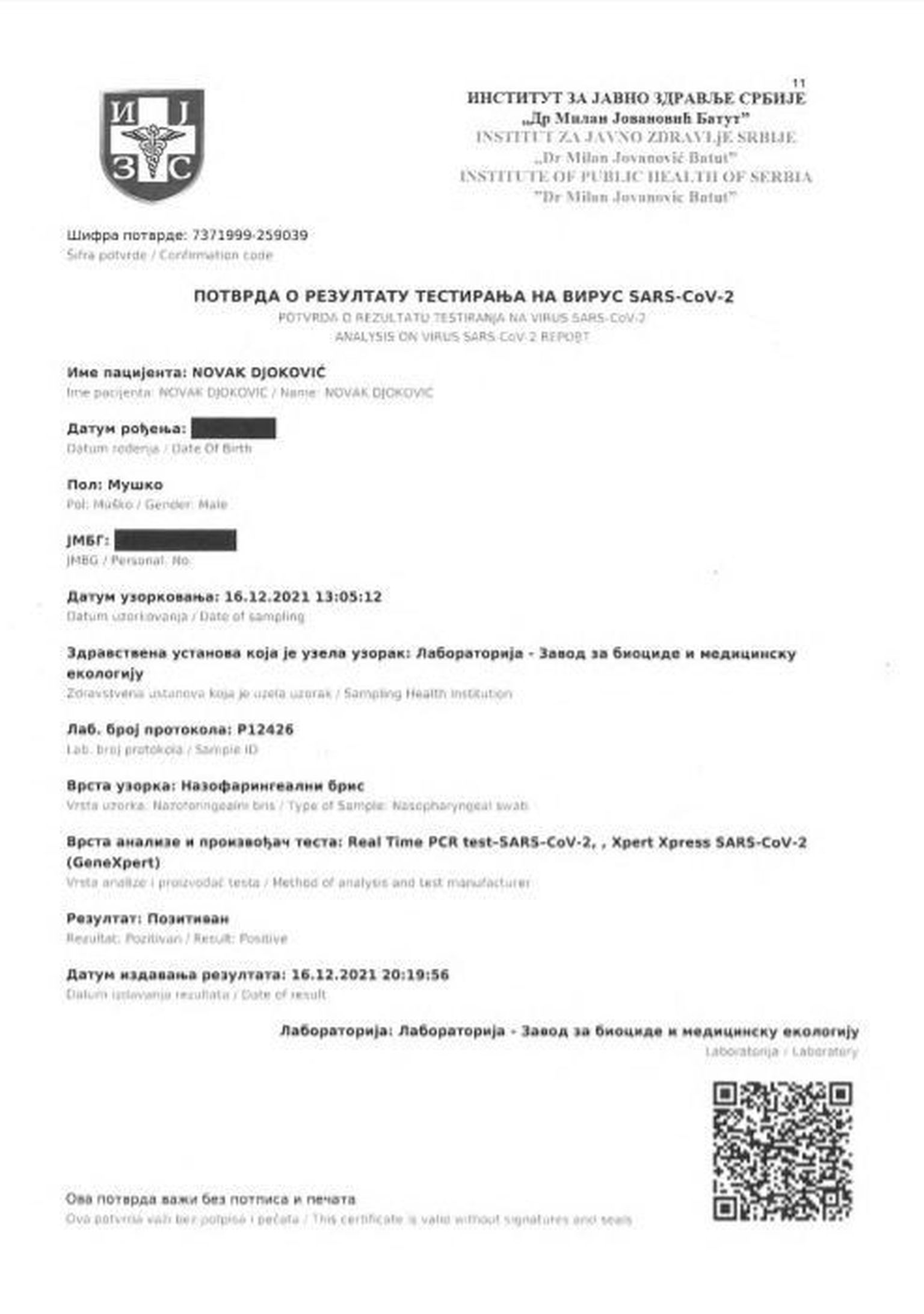 Pozitivan nalaz Novaka Đokovića Foto: Sky.com/GOL.hr -
